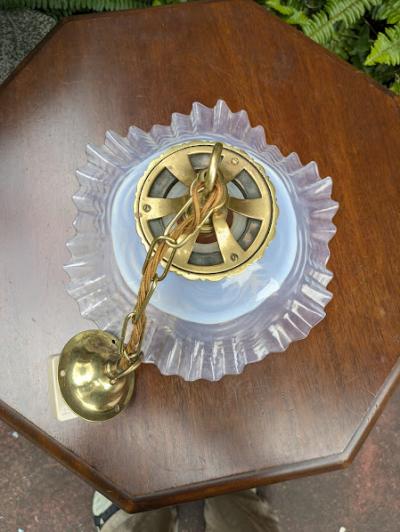 オパールセントガラスのアンティークペンダントライト【45-237】