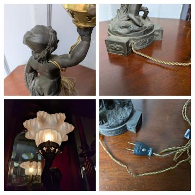 ブロンズフィギュア・スタンドランプ【35-164】 フランス製 推定1900年代初期