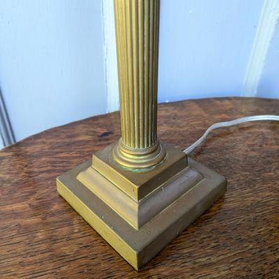 古代建築を思わせる円柱デザインで、真鍮特有の経年による風合いが魅力を引き立てています。書斎、寝室、リビングのサイドテーブルなど、どこに置いても空間を格調高く彩ってくれる一品です。
