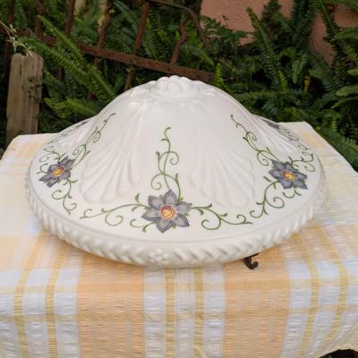 柔らかな乳白ガラスに、蔓草と花がハンドペイントで描かれたエレガントなハンギングボウル【45-267】イギリス製 推定1930年代