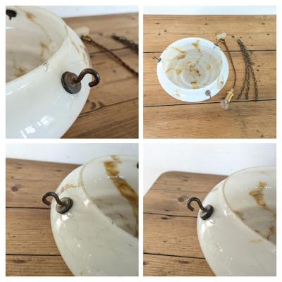 乳白色のオパールガラスに、さわやかなグリーンの色ガラス片を溶かし込んだアールデコのハンギングボウル【45-413G】