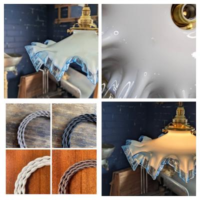 青い縁取りが美しい大きなフリルのガラスシェード【45-369】