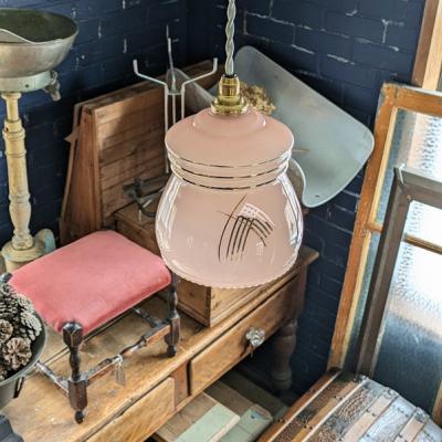 優しいさくら色が印象的なガラスのペンダントライト【45-118】