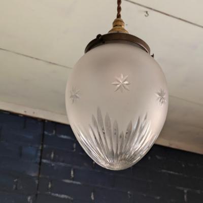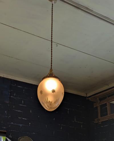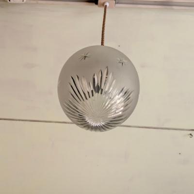 やわらかな印象のガラスをベースに、星形モチーフと放射状に施されたカットが美しいガラスシェード【45-239】