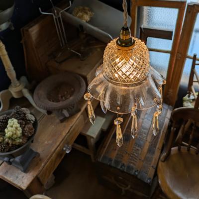 小さいながらも存在感や透明感があるため、玄関や階段ホール、ダイニング、アクセント照明としてもおすすめです。コード・ソケットは日本仕様(E17)に交換済みで、点灯確認済みのため安心してお使いいただけます。