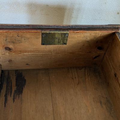 長年使い込まれた無垢材ならではの木肌の表情や、擦れ・小傷・色むらが一つひとつ異なり、同じものが二つとない点が大きな魅力。真鍮製と思われる取っ手や鍵穴のディテールも雰囲気があり、置くだけで空間に英国アンティークらしい味わいを添えてくれます。