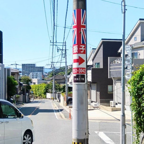 電柱に看板があります(駐車場2台有)