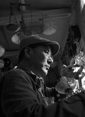 1953年福岡生まれ、学生時代より古い物に興味を持ち趣味として収集する。卒業後インテリア業界、家具メーカーに就職後長年の夢だった古い物に携わる仕事がしたくて、平成元年日本の古道具の店を構える。