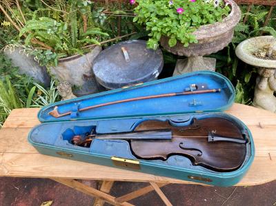 木製ペイントバイオリンケース【44-889】ドイツ製バイオリン付属