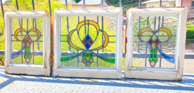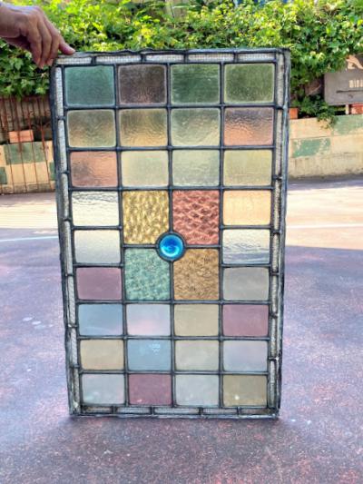 凹凸ガラスで外から見えにくいステンドガラス【42-52-1】W55×H99