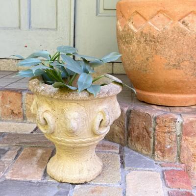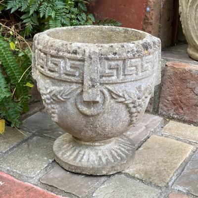 セメント鉢(小)【43-396G】Greek key