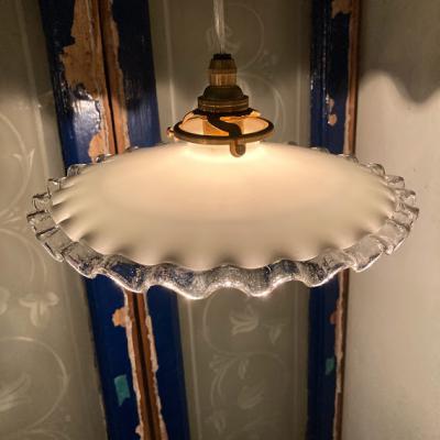 丸みを帯びたフリルミルクガラスシェード【43-C】 フランス