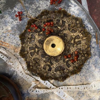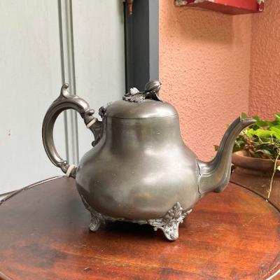葉と果実のフィニアル付きピューターポット【44-359-1】