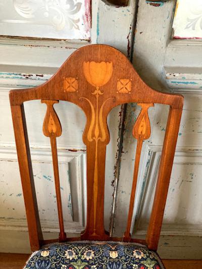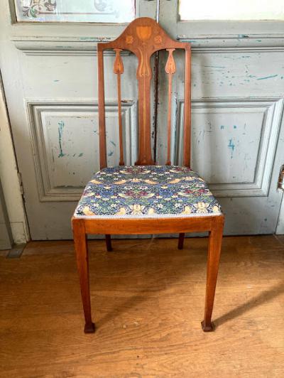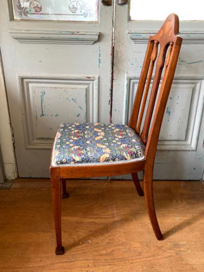 マホガニーチェア② インレイド(象嵌) ウイリアムモリス いちご泥棒に張替え済み