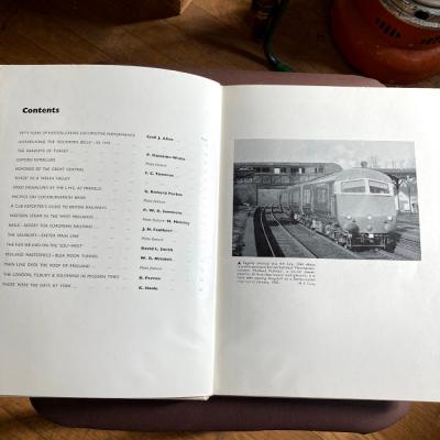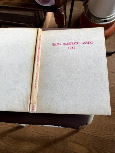 タイトル「TRAINS ILLUSTRATED ANNUAL 1961」 FREEMAN ALLEN イギリスの鉄道に関する書籍です。蒸気機関車などの鮮やかなイラストと写真は図鑑のようなしっかりとした紙に印刷されており、英語が分からなくでも眺めるだけで楽しめる本です。現在は蒸気機関車を見ることがほとんどないので資料としても良さそうですね。表紙をめくると以前の持ち主のサインのような書き込みがあります。また、背表紙部分は日焼けしており、変色がみられます。新しいものにはない、時代を感じる雰囲気をお楽しみいただける方におすすめです。こちらは送料無料にてお届けできます。鉄道好きな方へのプレゼントにどうぞ!