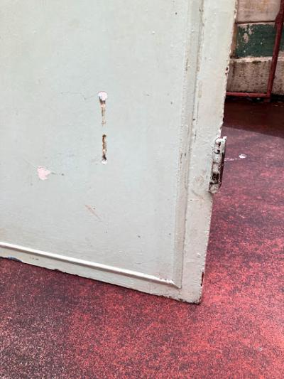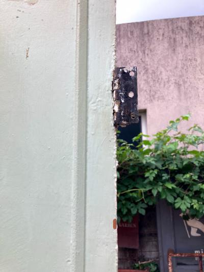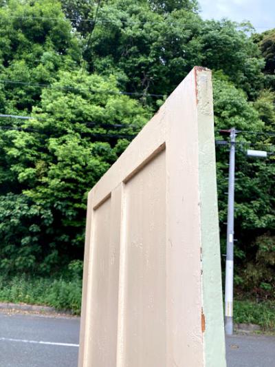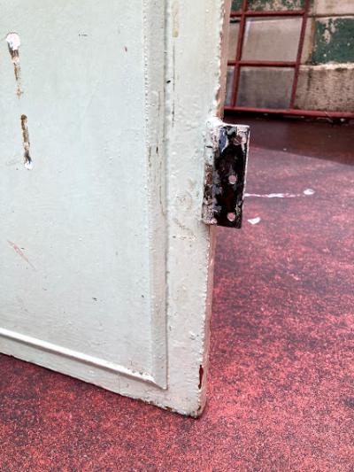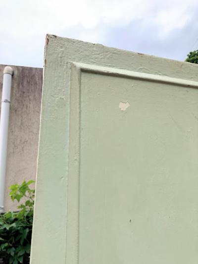 パインドアをホワイトとミントグリーンにペイントした可愛らしい扉です。傷や凹み、パーツを外した跡なとがありますが、時代を感じるたたずまいです。取っ手は付属しておりませんでした。お好きな取っ手などを付けてお楽しみください。上から好きな色にペイントしても面白いですね。ペンキの剥がれたような古い雰囲気のものが好き!レトロな雰囲気にしたい!方向き。ピカピカの新品がお好きな方はご遠慮ください。リフォームやリノベーション、新築の建具に、店舗などのインテリアにおすすめです。上下2か所に蝶番が付いています。取り付け等につきましては、ご自身のご契約されている施工業者さまにしっかりとご確認ください。
