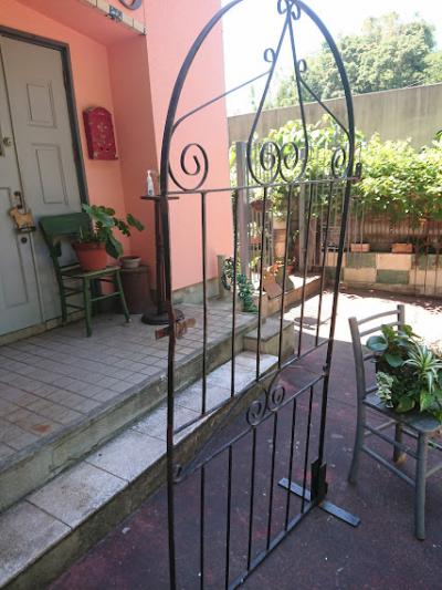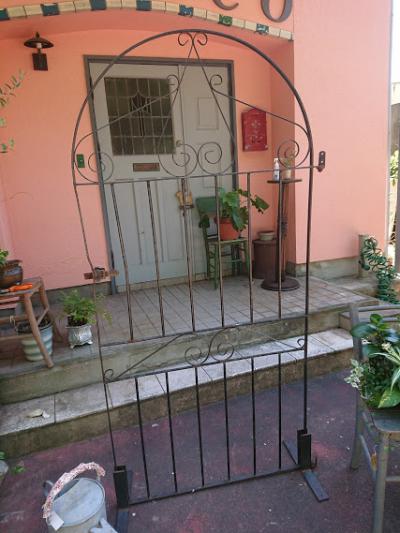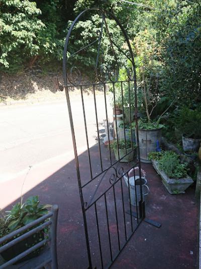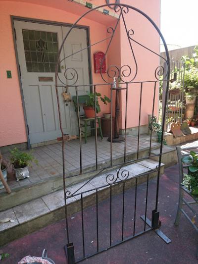 曲線が美しいアイアンアーチゲート。お庭のゲート(扉)やつる性の物を這わせてガーデニングなどにもいいですね。経年劣化により一部変形の部分や傷、サビがございます。古いものが好き!イングリッシュガーデンを目指している方!お店のアクセントを探している!におすすめ。ピカピカの新品をお求めの方はご遠慮ください。サイドにネジ穴が4か所ありますが、実際に取り付けをお考えの方はご自身の契約されている施工業者さまにご相談ください。※ゲート立ては付属しません。