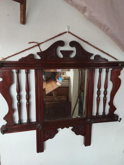 マホガニー・フック付きウォールミラー
