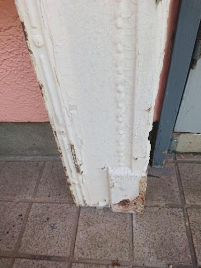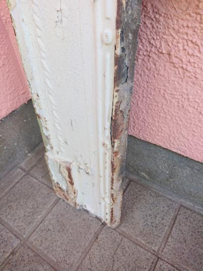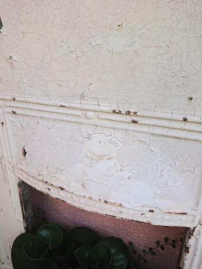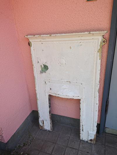 鋳造で作られた白い暖炉パーツ。実際に使用するというよりはこの雰囲気を生かしてガーデンや店舗什器、デイスプレイ用としてお楽しみくださいね。裏面は長い時代を経た証として錆に包まれています。表面にはペイントのはがれがあり、ポロポロと剥がれやすいため店舗から配送を行う際にペイントがはがれる場合があります。古いものが好きな方!サビに愛着を感じる方!におすすめ。