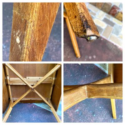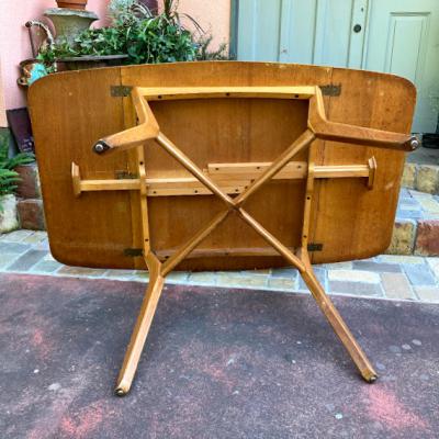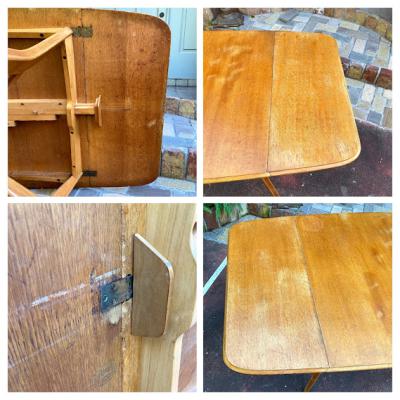 人気のG-PLANの折り畳みテーブルですが、現地で脚の補修箇所2か所があり、輸送のダメージで少しグラつきがあります。裏面にGPLANのゴールドのロゴあり。裏面の棒をスライドすると伸縮できます。経年劣化による変色・傷などがありますのでしっかりと実物をご確認いただければと存じます。折り畳むと一般的なサイズの椅子がピタリと収まるサイズ感です。ビンテージ品にご理解のある方、店舗などの展示台をお探しの方におすすめ。強度の都合上あまり重い物のご利用は避けてください。ご不明な点はLINEやお電話にてお問合せくださいね。