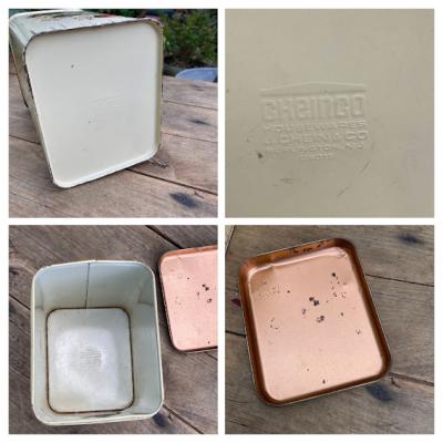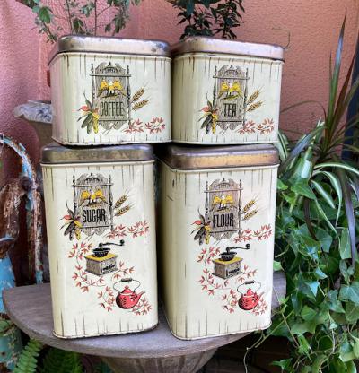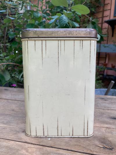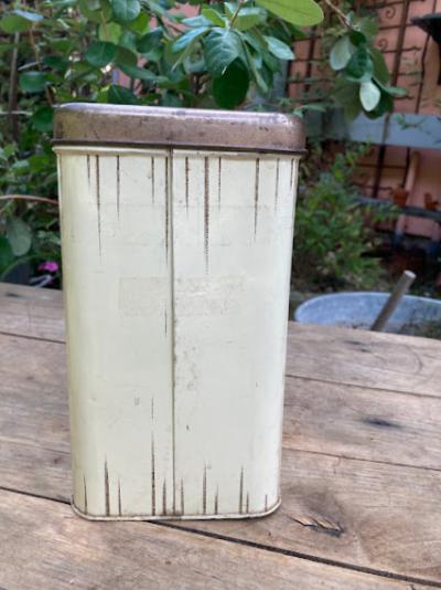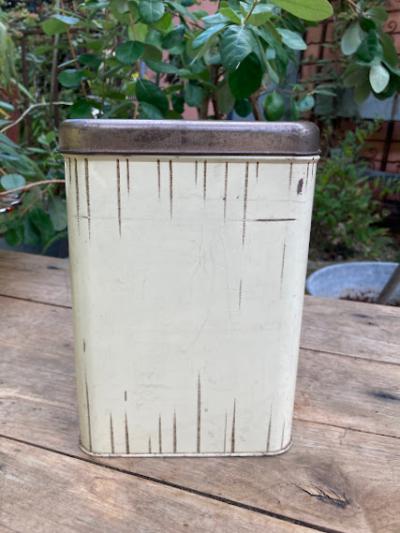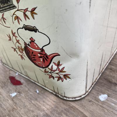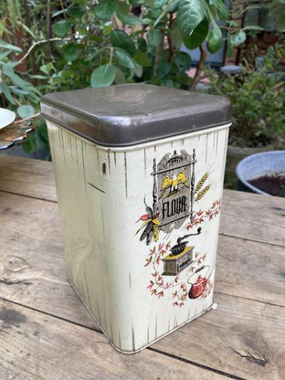 イギリスビンテージのFLOURロゴ入り缶。レトロな雰囲気のカフェを思わせるイラストが素敵ですね。この他にも全4種類同じシリーズの物がございます。底面にCHEINCOのロゴあり。キッチンツールや小物の整理にちょうど良いサイズ感です。古いお品のため側面に傷、サビ、正面右下部分に凹みが見られます。これらも含めてお楽しみいただける方におすすめ。ピカピカの新品をお求めの方はご遠慮ください。