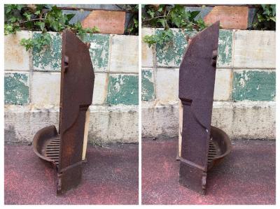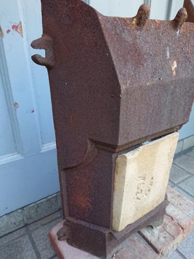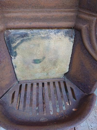 独特な雰囲気のサビに包まれた暖炉パーツ。観葉植物との相性が良いため、植木鉢を置いたり、グリーンを這わせても素敵ですね。古道具がお好きな方、サビを好む方、雰囲気のある小物をお探しの方におすすめ。約12キロとやや重さがありますので、設置する場所によっては前に倒れないように、ワイヤーや足元に耐震マットを敷くなど固定したほうが安全です。ピカピカの新品をお求めの方はご遠慮ください。福岡市南区の店舗にてお渡しもできますのでお気軽にどうぞ!