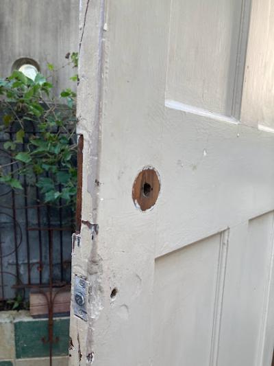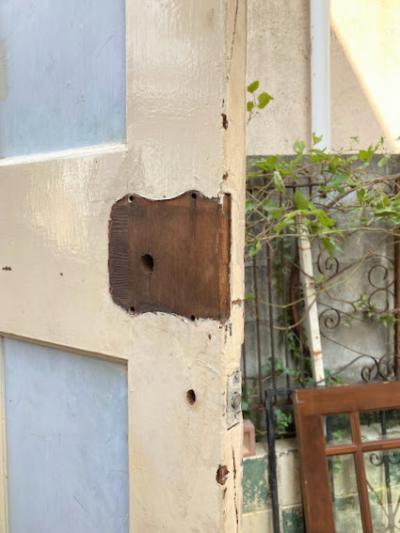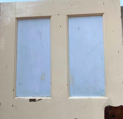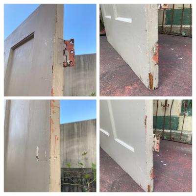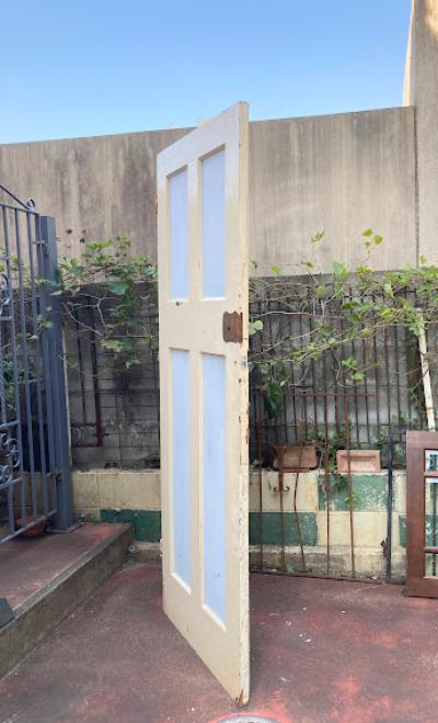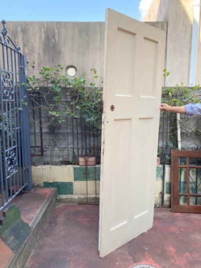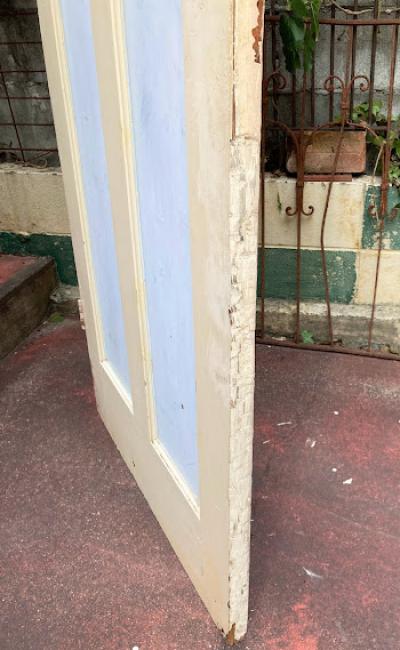 パイン材のドアをベースに白と薄い水色をペイントしたドア。DIYが盛んなイギリスでは持ち主がそれぞれ好きな色に塗り替えることが多く、こちらもダイナミックなペイントが施されています。塗りムラなどは一切気にしておらず、時代が経つといい具合にペイントが剥がれて素敵な風合いに。側面の部分は取り付けの際に調整を行うため削られたような跡が残っています。日本人ならばまっすぐ綺麗に削るところをあえて残して、ペイントするところが面白いですね。ドアのみとなります。ドアノブや鍵、取り付け用の丁番などはご自身でお好きな物をご利用ください。日本の規格のサイズではありませんので、取り付けにつきましてはご自身の契約されている施工業者さまにお問合せください。福岡市中心部はお店から配達できますが、それ以外の地域はヤマト家財便利用となります。予めご了承ください。