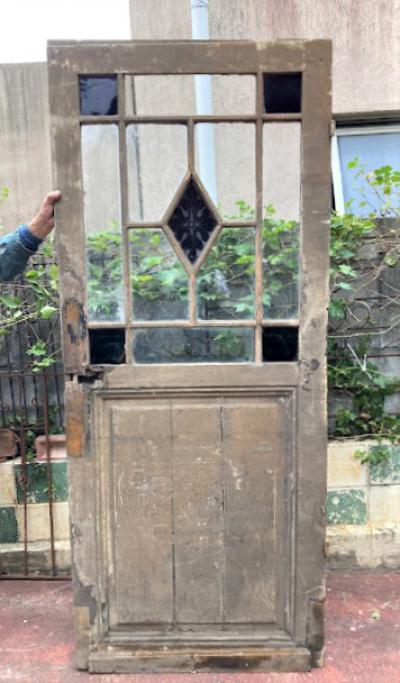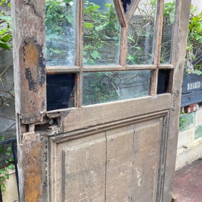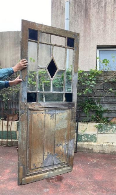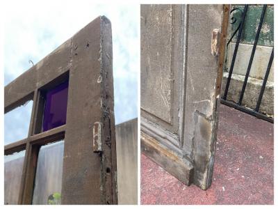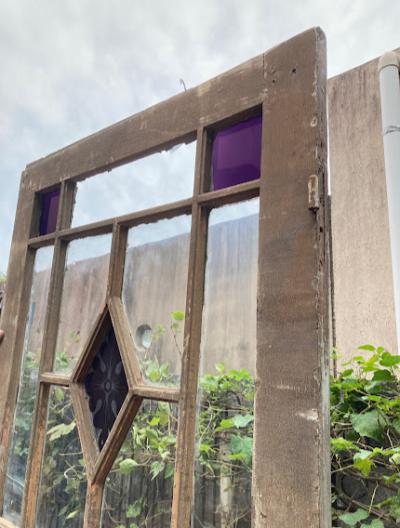 シャビ―な存在感のあるフランスのドア。推定1800年代。長い間、雨風にさらされ数枚ガラスが割れてしまっています。しかしながら独特の存在感を持つ中心の紫のガラスに目を引き付けられます。ガラスがないため屋外での使用は難しいですが、室内であればパーテーションや壁面装飾、割れたガラスにツタを絡ませるなど、アイデア次第で可能性が無限に広がります。海外のInstagramなどでは、このようなドアをよく見かける方も多いかもしれませんね。ご覧いただける状態でのお渡しとなります。店舗の内装や撮影スタジオ。ウエディングフォトなどにおすすめ。取り付けにつきましてはご自身の契約されている施工業者さまにお問合せください。追加の画像などもお送りできますので、お気軽にLINEまたはメールにてお申し付けください。福岡市内中心部は店舗から配送も行いますが、それ以外の地域はヤマト家財便を利用します。こちらは古く長い時代を経た風合いを楽しむものとなりますので、新品のようなコンディションを求める方はどうぞご遠慮ください。