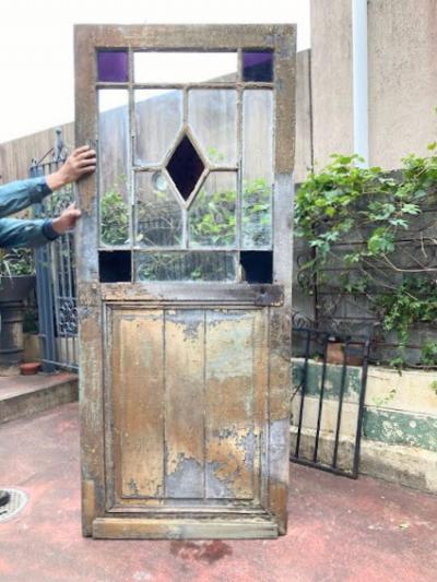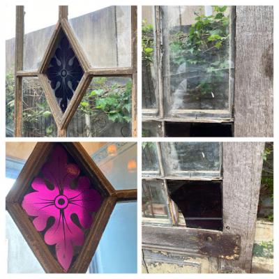 フランスアンティーク シャビ―な紫ガラスの美しいドア