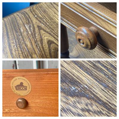 イギリスで1920年に創業したERCOL(アーコール)のランプテーブル。こちらは同じものが2点あるうちの一つとなります。管理番号【A】こちらは木目の模様がはっきりと出ている方です。今回新しくイギリスより入荷しました。北欧家具のようなシンプルなデザイン。ベッドサイド以外でもソファの横でコーヒーテーブルのような使い方や、引き出しが付属していますのでリモコンや筆記具などよく使う小物を収納しても良さそうです。1980年代~90年代。このデザインは現地でもあまりお目にかかれない珍しい商品とのことでした。ビンテージ品のため小さな傷などはございます。風合いとしてお楽しみいただける方、毎日の生活に彩りの欲しい方におすすめ。福岡市南区の店舗にてお渡しもできますのでお気軽にどうぞ!