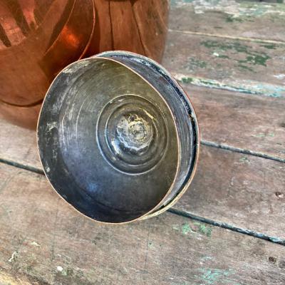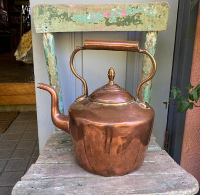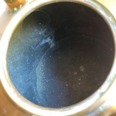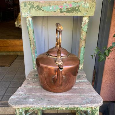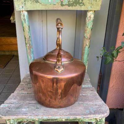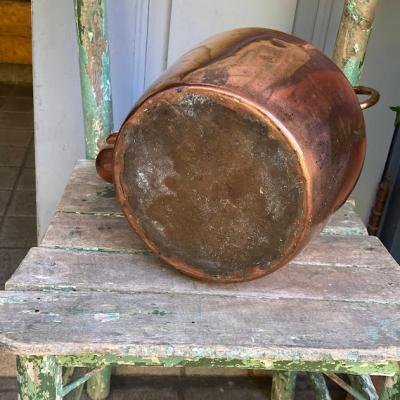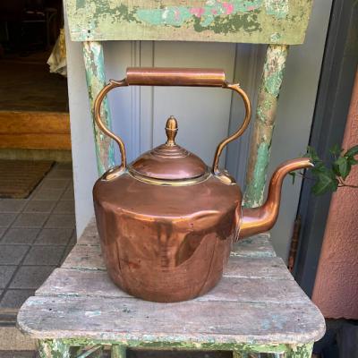 ずっしり大きなサイズ感で底面部分に数字の8とロゴのようなものが入っていました。季節のお花やドライフラワーなどを飾っても素敵ですよ。時間がたつと注ぎ口の付け根よりほんの少しだけ水漏れがあり、側面には経年劣化による凹みや小さな傷などがございます。アンティーク商品の風合いをしてお楽しみいただける方に。推定1950年代。一般的なサイズの椅子に乗せておりますのでサイズ感の参考にされてくださいね。ピカピカの新品をお求めの方はご遠慮ください。福岡市南区の店舗にてお渡しもできますのでお気軽にどうぞ!