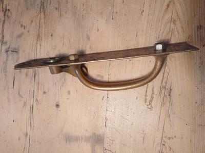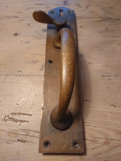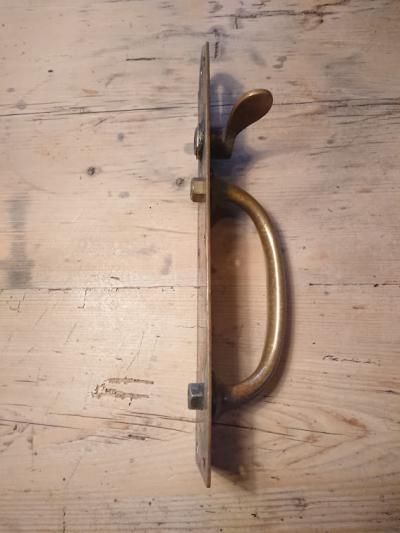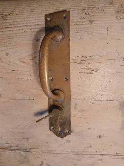 真鍮ドアー取手【H4】男性の手の大きさでもちょうど握りやすく、歴史を感じる錆びた感じがいい風合いです。同じ形の商品もありますので、同梱などの場合は事前にお問合せください。古いお品のため裏側にナット部分の出っ張りがあります。取り付けの際にドアに穴を開けるなど少し工作が必要となります。取り付けに関しましてはご自身の契約されている施工業者さまにお問合せください。福岡市南区の店舗にてお渡しもできますのでお気軽にどうぞ!