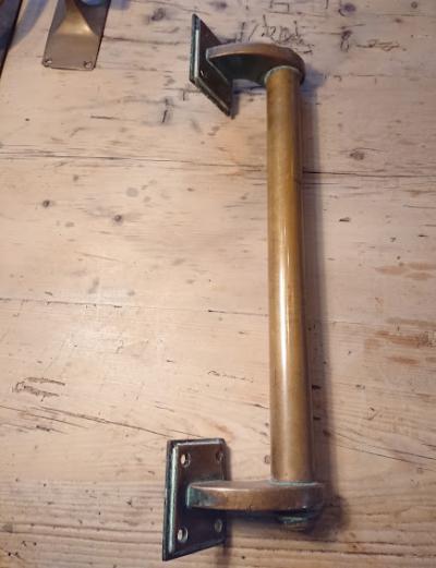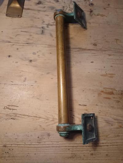 ずっしりと大きな真鍮の取手。新品にはない長い年月を感じる雰囲気が素敵です。玄関ドアや室内ドアなどに彩りを添えてくれますよ。アンティーク品のため擦り傷、光沢、錆があります。古いお品がお好きな方におすすめ。ピカピカの新品をお求めの方はご遠慮ください。福岡市南区の店舗にてお渡しもできますのでお気軽にどうぞ!