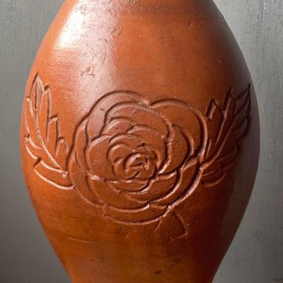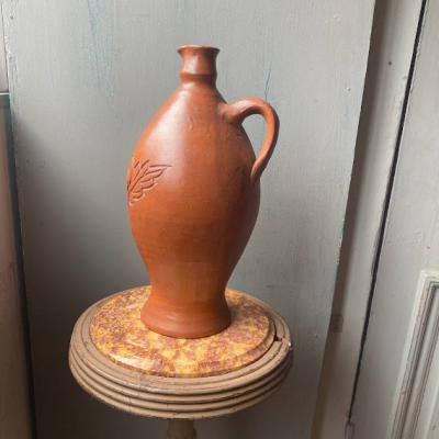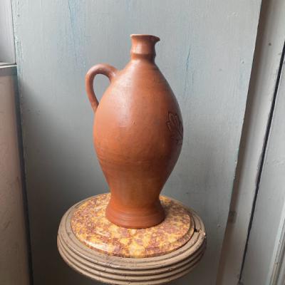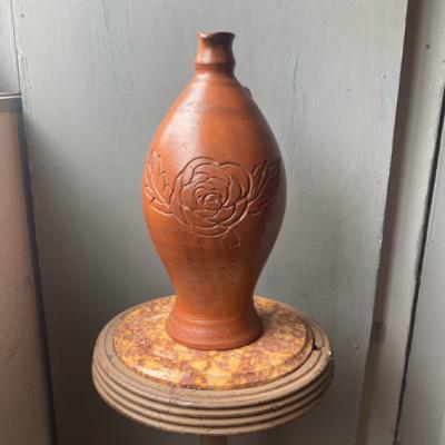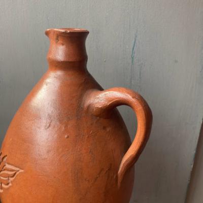 フランス製のシルエットが美しい水差し。手づくりらしい肌の質感と深く刻まれたバラモチーフが優しい雰囲気ですね。水漏れはありませんでしたが、注ぎ口にほんの少しカケがあります。底面にはサインのようなものが入っています。素朴な佇まいを好み、お部屋のアクセントとしてお楽しみいただける方におすすめ。年代不詳とのこと。福岡市南区の店舗にてお渡しもできますのでお気軽にどうぞ!ピカピカの新品をお求めの方はご遠慮ください。