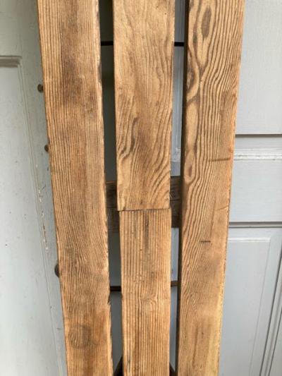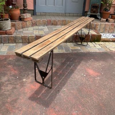 折りたたみ式の細長いベンチ。裏面の金具をクルッと回すと金具が外れる仕組みになっており、収納も楽ちんです。現地のセラーによるとパイン材×アイアンとのこと。推定1950年代。観賞植物や小物をディスプレイするのに良さそうです。時代を感じる雰囲気を残したいので天板、脚部分はあえて軽く拭き上げる程度に仕上げてあります。傷やサビなどジャンクな雰囲気が好き、ビンテージ感のあるカッコいいお部屋作りがしたい方におすすめ。ピカピカの新品をお求めの方はご遠慮ください。福岡市南区の店舗にてお渡しもできますのでお気軽にどうぞ!