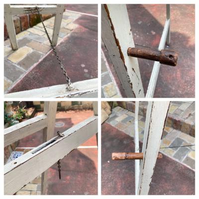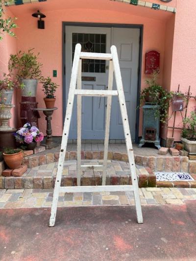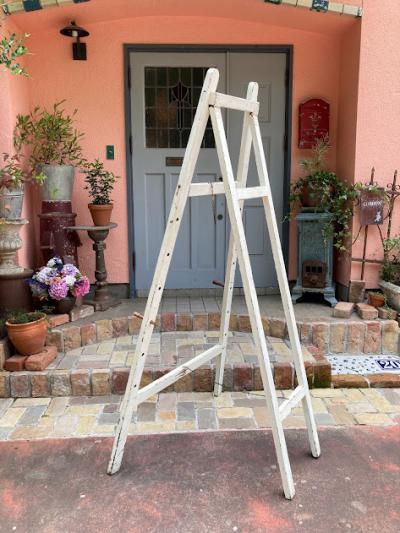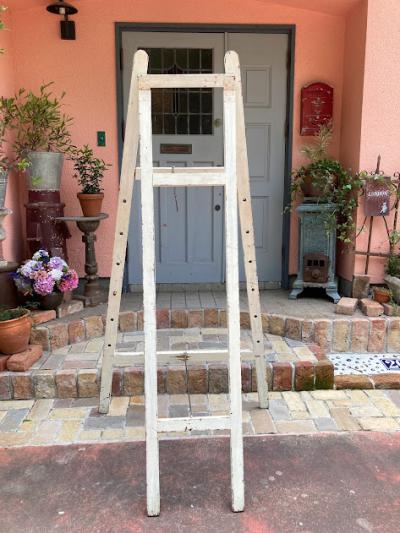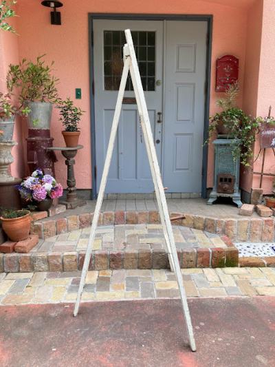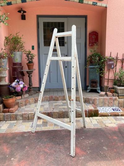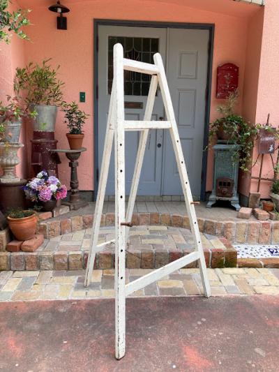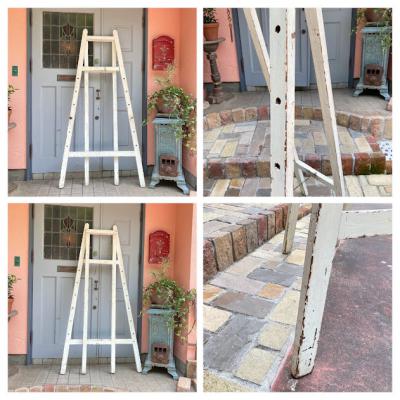 大きなホワイトペイントイーゼル。写真の絵は約20号(750×650)ほどの作品を乗せてあります。高さ調節用の穴が6個開いていますので、下は約45㎝から118㎝まで高さ調整が可能です。ホワイトでペイントされ所々剥がれがありますが、時代をしっかりと感じることができるたたずまいです。閉じると幅が7㎝弱となりますので収納にも便利ですね。シャビーシックな雰囲気で大きめのディスプレイ台をお探しの方におすすめ。ピカピカの新品をお求めの方はご遠慮ください。福岡市南区の店舗にてお渡しもできますのでお気軽にどうぞ!※撮影に使用した絵は付属しません。