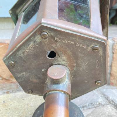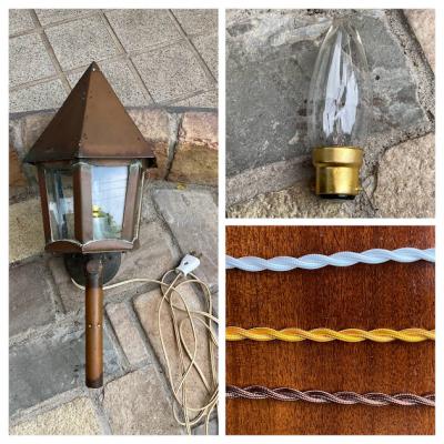 まるで映画に出て来そうな壁掛け照明。中世から20世紀ごろまでイングランドとスコットランドの間の主要な高速道路であった「GREAT NORTH ROAD」の記載があります。街灯として使用されていたのかもしれませんね。電球は海外仕様のピン式です。口金サイズはB22となります。付属のコードは展示用に一時的に中古のコードを付けてありますので、ご希望のコード色(ゴールド・ホワイト・ブラウン)からお選びください。1mまでは無料で交換します。差込口はコンセントか引っ掛けシーリングいずれかに交換できます。防水機能であるゴムパッキンなどは付属していませんので、軒下など直接雨の当たらない場所や屋内でのご利用をおすすめします。電球の交換は下のマイナスネジを外して交換する形です。レトロな雰囲気がお好きな方向き。ピカピカの新品をお求めの方はご遠慮ください。福岡市南区の店舗にてお渡しもできますのでお気軽にどうぞ!