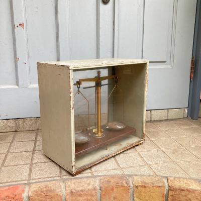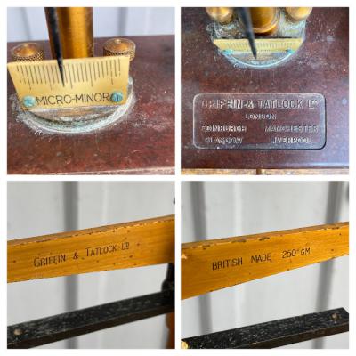 1881年にイギリスで創業し1929年にこのロゴであるGRIFFIN&TATLOCKとなり実験器具のメーカーとしてさまざまな種類の器具を販売していたそうです。正確な計測などはできませんが、お店のディスプレイやインテリアとして楽しめそうです。おもりを置く部分にアクセサリーなどを飾っても素敵ですね。作家さんなどは作品を飾るベースとしてもおすすめです。正面の丸い部分を回すと中心の棒が上下にほんの少し動きます。一番下まで下げるとお皿の部分が下に付き左右のフックからは外れるような構造になっていました。おもりなどの付属品はありません。オリジナルの世界観を作り出してみたい方向き。福岡市南区の店舗にてお渡しもできますのでお気軽にどうぞ!