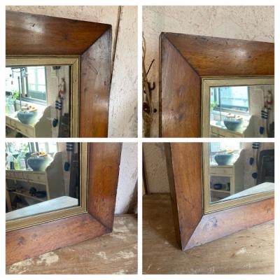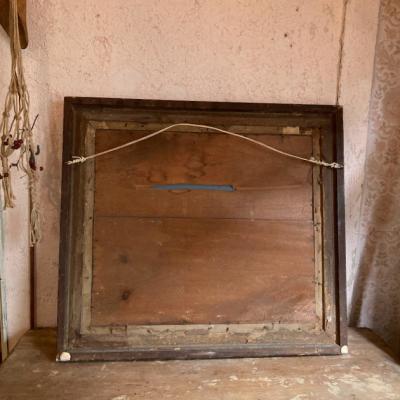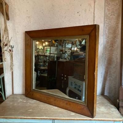 イギリスで見つけたフランスの古い鏡。チーク材の柔らかな風合いが素敵ですね。写真のように壁に立てかけても、壁にかけてもいいですね。裏面は当時のままの状態を残したいので、過度なクリーニングをせず軽くホコリのみを払ってあります。裏面の左上部分に当時の古い新聞のようなもので補修した箇所があり、大切にされていたのだと感じさせてくれるお品です。表面の鏡は比較的コンディションが良いのでこのまま問題なくご使用いただけますよ。存在感のある鏡をお探しの方におすすめ。