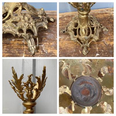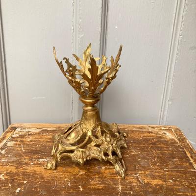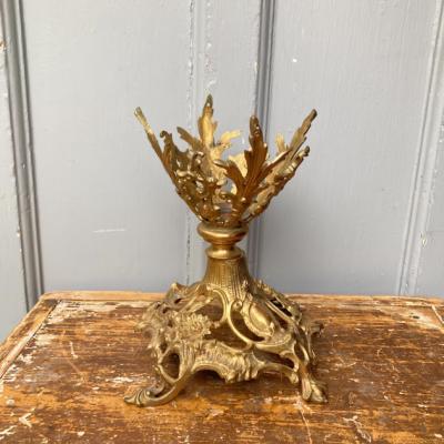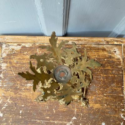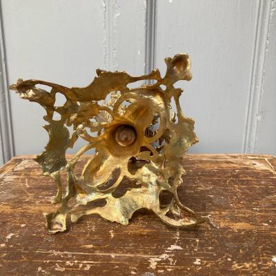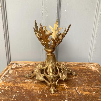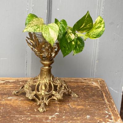 フランスアンティークの照明パーツ。元は上の部分にガラスのシェードをセットして照明として使用されていたようです。このままでも十分存在感がありますが、お好きな観賞植物やドライフラワーなどを飾って季節を楽しんでもいいですし、アクセサリースタンドとしても良さそう。先端に小さな穴が対角線上に2か所開いていますのでワイヤーなどを通して天井から吊り下げることもできます。素材は合金のようで磁石はくっつきませんでした。上の中心部分に丸い土台になりそうな部分があるのでキャンドルホルダーのような使い方もできそうです。どこで、どのように使うか考えるのが非常に楽しいお品ですよ。オリジナルの使い方がピンっ!ときた方におすすめ。内側に製造時にできた跡やサビなどがあります。