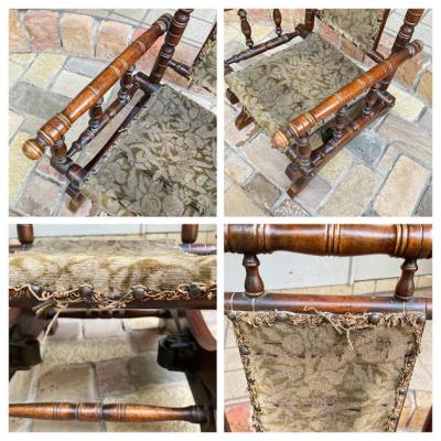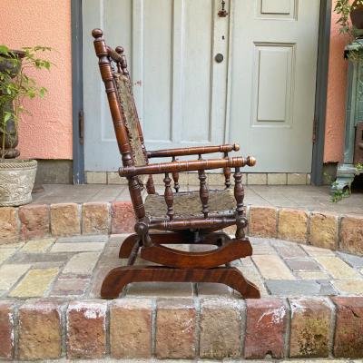 繊細で美しいラインが特徴のエドワーディアン様式(1901年~1910年代)の小さなロッキングチェア。今回の買付を行った中で実用性よりも、美しさがまさった商品です。生地のほつれなどがありますが、当時のままの面影を色濃く残しています。底のバネ2か所があることで、前後にゆらゆらと動きます。当時の小さな子供達を支えてきた様子が目に浮かぶようですね。実際のご利用というよりは、店舗などのディスプレイとしてご使用ください。新しいものには出せない重厚感のあるお品をお探しの方におすすめ。風合いを残すため乾拭きのみ行いました。ピカピカの新品をお求めの方はご遠慮ください。福岡市南区の店舗にてお渡しもできますのでお気軽にどうぞ!