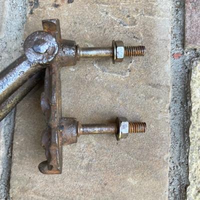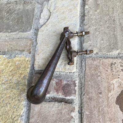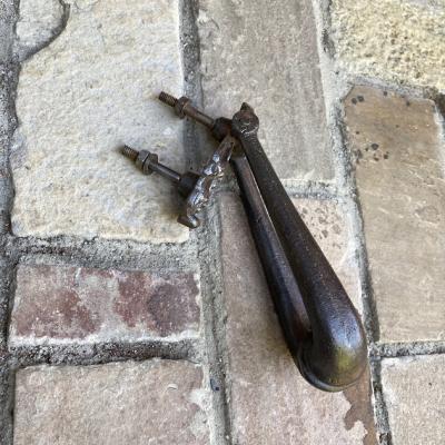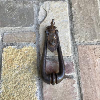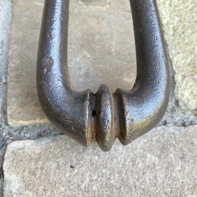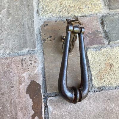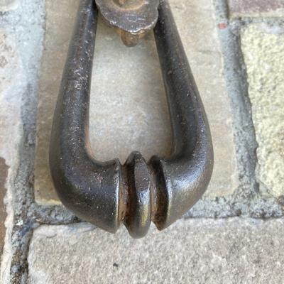 日本では見かけないずっしりと重厚感のあるドアノッカー。長さ17㎝ほどで大人の指が2本くらい入るサイズ感です。裏面のドアに当たる部分は少し平になっています。長きに渡り多くの人がノックしてきた証ですね。お店のドアやご自宅のドアのアクセントとしておすすめ。ひと味違うパーツをお探しの方向き。ピカピカの新品をお求めの方はご遠慮ください。福岡市南区の店舗にてお渡しもできますのでお気軽にどうぞ!