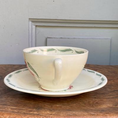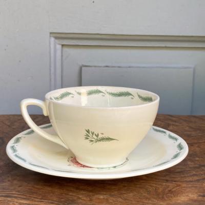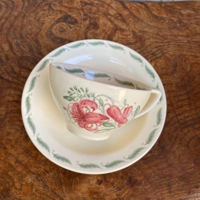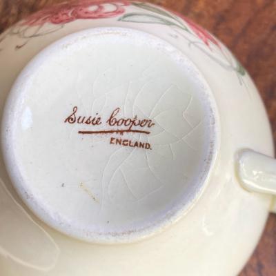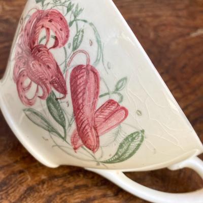 1941年にイギリスで空襲が収まったころにデザインされたのがこちらの「タイガーリリー」というデザインだそうです。スージーはヴィクトリア時代のイラストブックや野生の花々からインスピレーションを受けていたとか。戦時下でショールームを破壊されるという経験を乗り越えたのち、スージー自身の力強さを感じる素敵な作品ですね。大きな割れなどは見受けられませんが、アンティーク特有の貫入がございます。貫入とは陶器と釉薬の縮みの差による網目状のことで、ヒビとは異なります。長い年月を経た証としてお考えいただければ幸いです。この力強いデザインにピンと来た方や、店舗什器などをお探しの方におすすめ。ピカピカの新品をお求めの方はご遠慮ください。福岡市南区の店舗にてお渡しもできますのでお気軽にどうぞ!