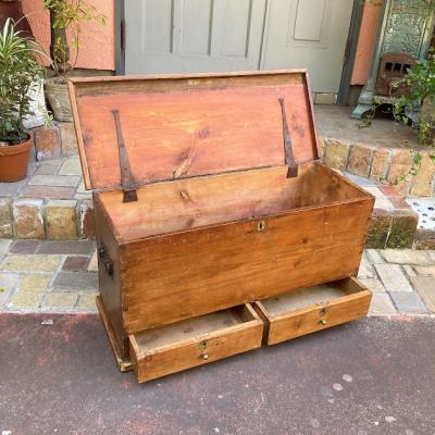 ベッドサイドに置いて寝具などを収納していたブランケットボックス(イギリスではコファとも呼ばれます)が入荷しました。味わいのあるパインの佇まいがとても素敵です。しっかりとした造りですので、収納だけでなく、ベンチやコーヒーテーブルなどでも活躍できそうです。下に小さめの引き出しも付属しているのでよく使う小物を入れてもいいですね。空の状態であれば大人一人での移動ができました。古木の持つ雰囲気が好きでお部屋の中心になれるボックスや、店舗のディスプレイ台をお探しの方におすすめ。ピカピカの新品をお求めの方はご遠慮ください。福岡市南区の店舗にてお渡しもできますのでお気軽にどうぞ!