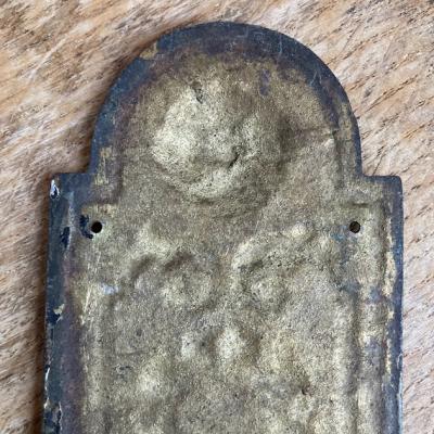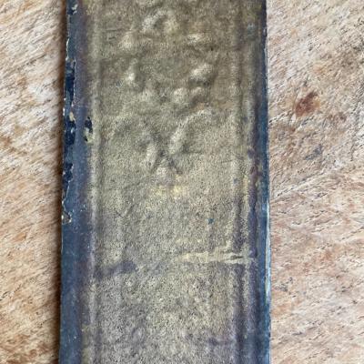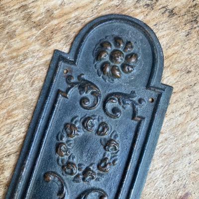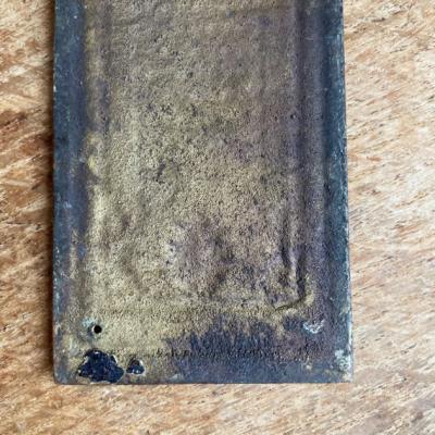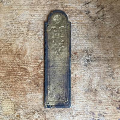 小さなお花をあしらったフランスのドアプレート(フィンガープレート)。1920~30年代とのこと。レストランなどで片面にはハンドル、裏面にこのようなプレートを取り付けてあることが多いですね。(写真の赤丸参照) 上下左右4か所に2mmほど取り付け用の小さな穴が開いていますが、左下のみ穴が塞がっていました。破損を考慮しそのままの状態にしてあります。全体的に当時の雰囲気を残すため軽く拭き上げるのみ行いました。印象的なドアや壁面の装飾をお探しの方におすすめ。ピカピカの新品をお求めの方はご遠慮ください。福岡市南区の店舗にてお渡しもできますのでお気軽にどうぞ!