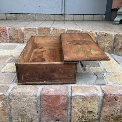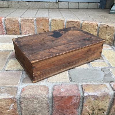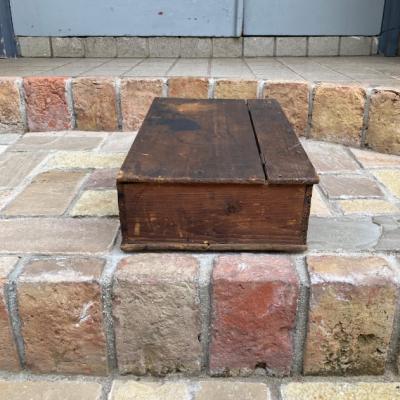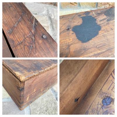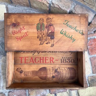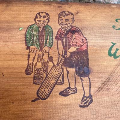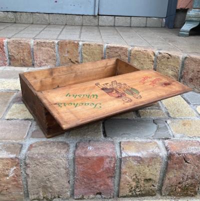 スコットランドウイスキーのボックス。外側は何の変哲もない古い箱ですが、フタを開けると可愛らしいイラストが満載で、内と外のギャップがたまらない商品です。フタにはクリケットを楽しむ男の子、底にはウイスキーのイラストが描かれています。側面には誰かが書き込んだ文字が入っていますが、アーティスティックな雰囲気で馴染んでいます。フタを開けてお部屋や店舗用のひと味違う収納兼ディスプレイ箱をお探しの方におすすめ。側面、内側ともに歴史を感じる雰囲気を残したいので軽く乾拭きのみ行っております。ピカピカの新品をお求めの方はご遠慮ください。福岡市南区の店舗にてお渡しもできますのでお気軽にどうぞ!