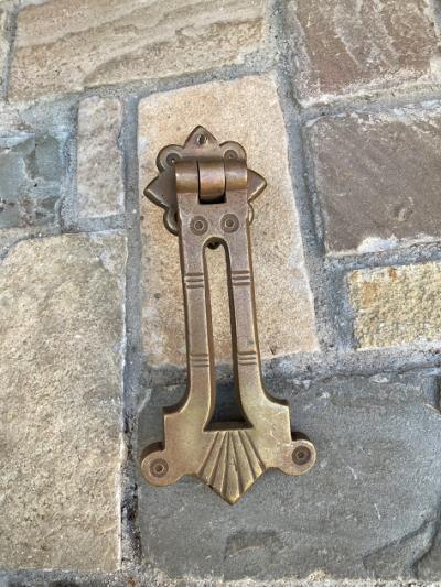 壁画のような雰囲気を持ち合わせているドアノッカー。イギリスより入荷しました。年代不詳とのこと。すっきりしたデザインと鈍い色合いがシンプルなドアを格上げしてくれそうですね。雰囲気を残すため乾拭きのみ行っております。約3㎝~4㎝ほどの厚さまで対応できますが、付属のネジは当時のままのネジとなりますので、パーツを交換することで様々な厚み対応できそうです。取り付けにつきましてはご自身の契約されている施工業者さまにご相談ください。重厚感のある商品をお探しの方におすすめ。ピカピカの新品をお求めの方はご遠慮ください。福岡市南区の店舗にてお渡しもできますのでお気軽にどうぞ!