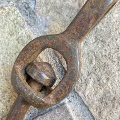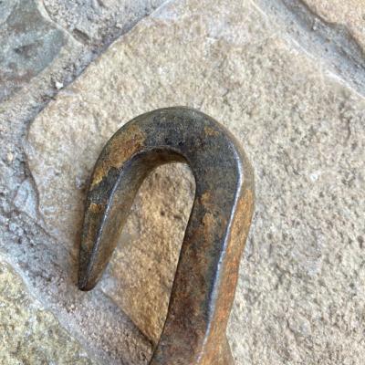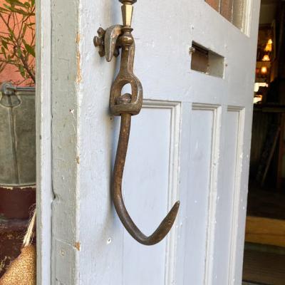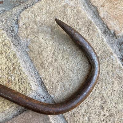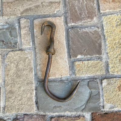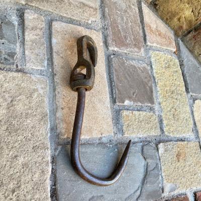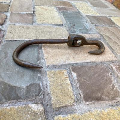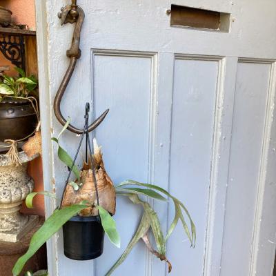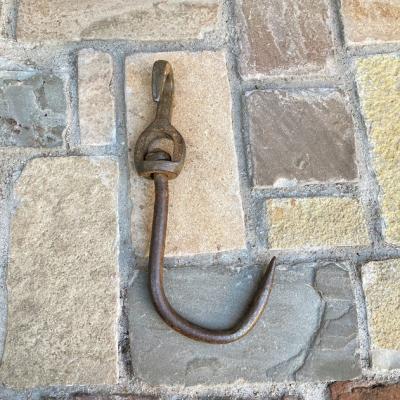 大きなアイアンフック。かなりの重量まで耐えられそうです。イギリス製。年代不詳。全体を包み込むサビの風合いはガーデニングなどにも合いそうです。上と下をつなぐ部分は動きますので、フックの向きを自由に変えることができます。植木鉢を吊り下げたり、バッグを下げる定位置にしても良さそうですね。この独特の雰囲気を残すため乾拭きのみ行っています。大きなフックで吊り下げたいものにピンときた方におすすめ。ピカピカの新品をお求めの方はご遠慮ください。福岡市南区の店舗にてお渡しもできますのでお気軽にどうぞ!