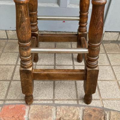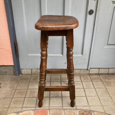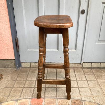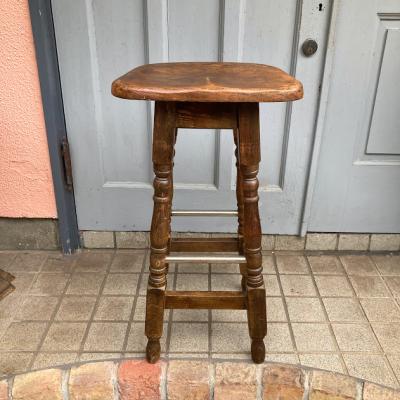 木目が美しい高さ70㎝ほどのハイスツール。イギリスより入荷しました。【41-304B】推定1970年代とのこと。座面に自然なくぼみが造られており、ゆっくりと座れる仕様になっています。足を乗せる部分はスチールで、多くの人を支えた証として剥がれやサビが出ています。キッチンカウンターの椅子やお店の雰囲気ある椅子をお探しの方におすすめ。ビンテージ特有の小さな傷を含む風合いはありますので、ピカピカの新品をお求めの方はご遠慮ください。福岡市南区の店舗にてお渡しもできますのでお気軽にどうぞ!