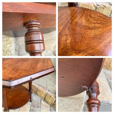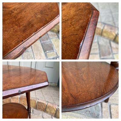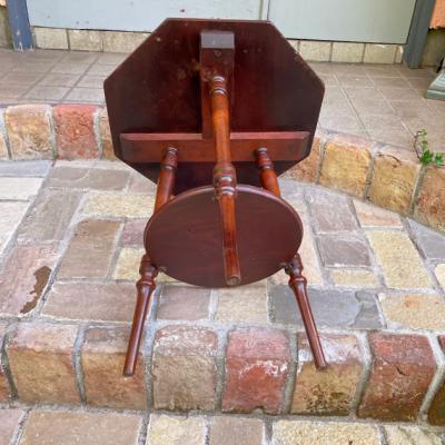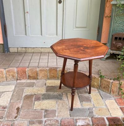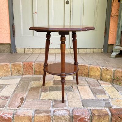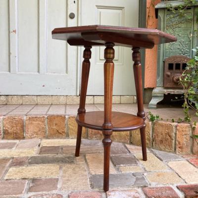 高さ53㎝とやや低めの八角形テーブル。マホガニー、イギリス製。推定1930年代。ソファやベッドサイドにちょうど良いサイズ感ですね。天板に加え下に小さな棚を持つデザインのため有効活用もできそうです。時代を感じる雰囲気がお好きで、小さめのサイドテーブルをお探しの方、店舗のディスプレイ台などをお探しの方におすすめ。アンティーク特有の小さな傷や凹みを含みます。ピカピカの新品をお求めの方はご遠慮ください。発送する際には脚の底にフェルトを貼ってお届けします。福岡市南区の店舗にてお渡しもできますのでお気軽にどうぞ!
